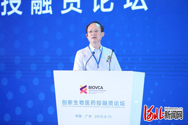 2019年6月11日,滄州四星玻璃股份有限公司董事長王煥一在創新生物醫藥投融資論壇作主題分享。 滄州四星玻璃股份有限公司供圖