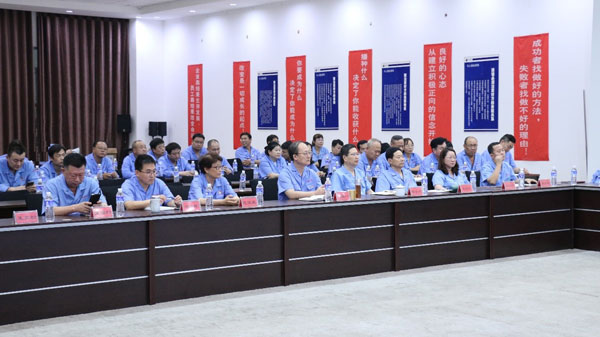 (大會主會場) 同心跟黨走,奮進新征程。2024年7月13日下午,四星玻璃黨支部召開慶祝建黨103周年暨“學黨史悟初心強企業(yè)做先鋒”主題教育啟動大會。主會場設在紙房頭廠區(qū)總部二樓多功能會議室,前候廠區(qū)、光熱廠區(qū)、基地廠區(qū)等地設視頻分會場。公司黨支部書記、董事長王煥一出席會議,公司全體黨員、入黨積極分子、公司中層以上領導、科室人員等260余人參加會議。會議由黨支部書記王煥一主持。